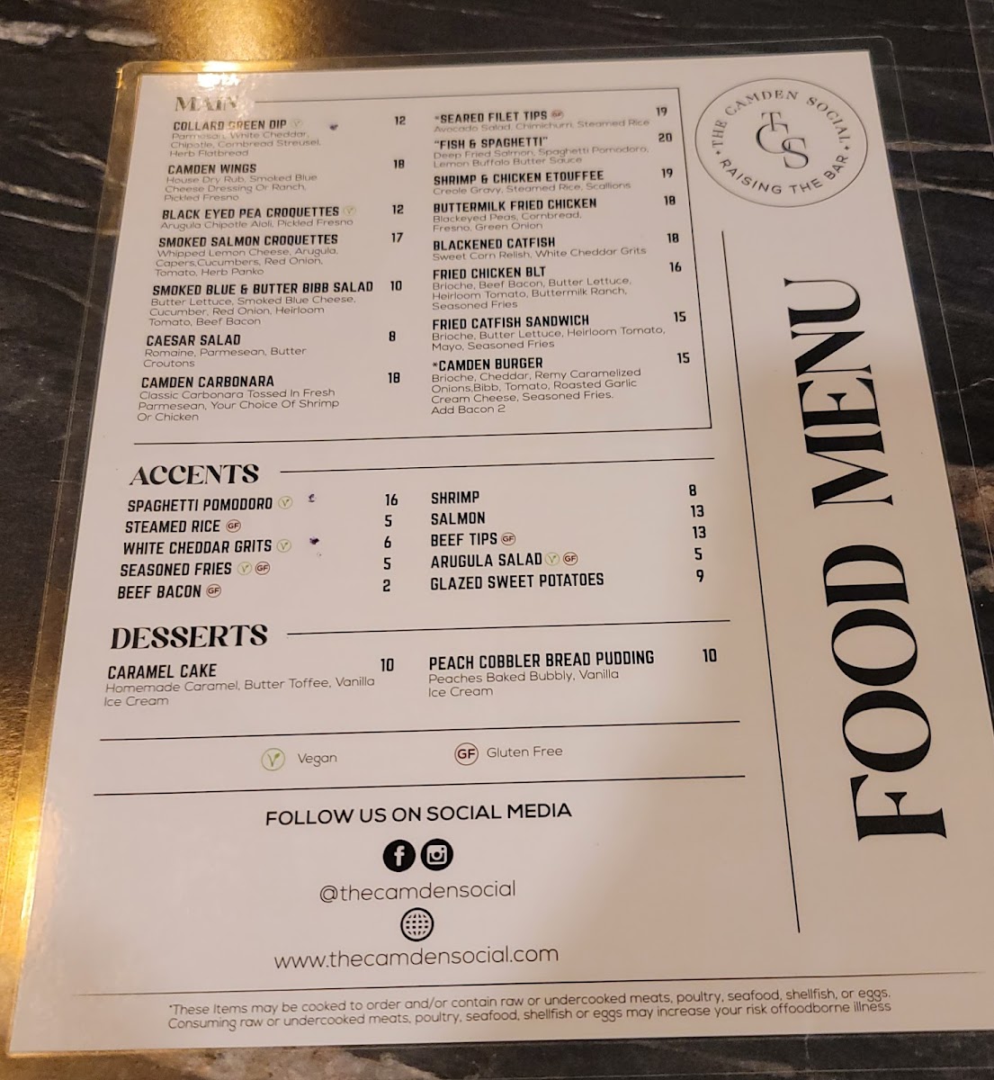 Welcome to The Camden Social, a delightful hidden gem nestled in Minneapolis that promises an unforgettable culinary experience. With a vibrant atmosphere featuring live jazz, stunning wall art, and an inviting lounge, it’s the perfect locale for both casual dining and special occasions.